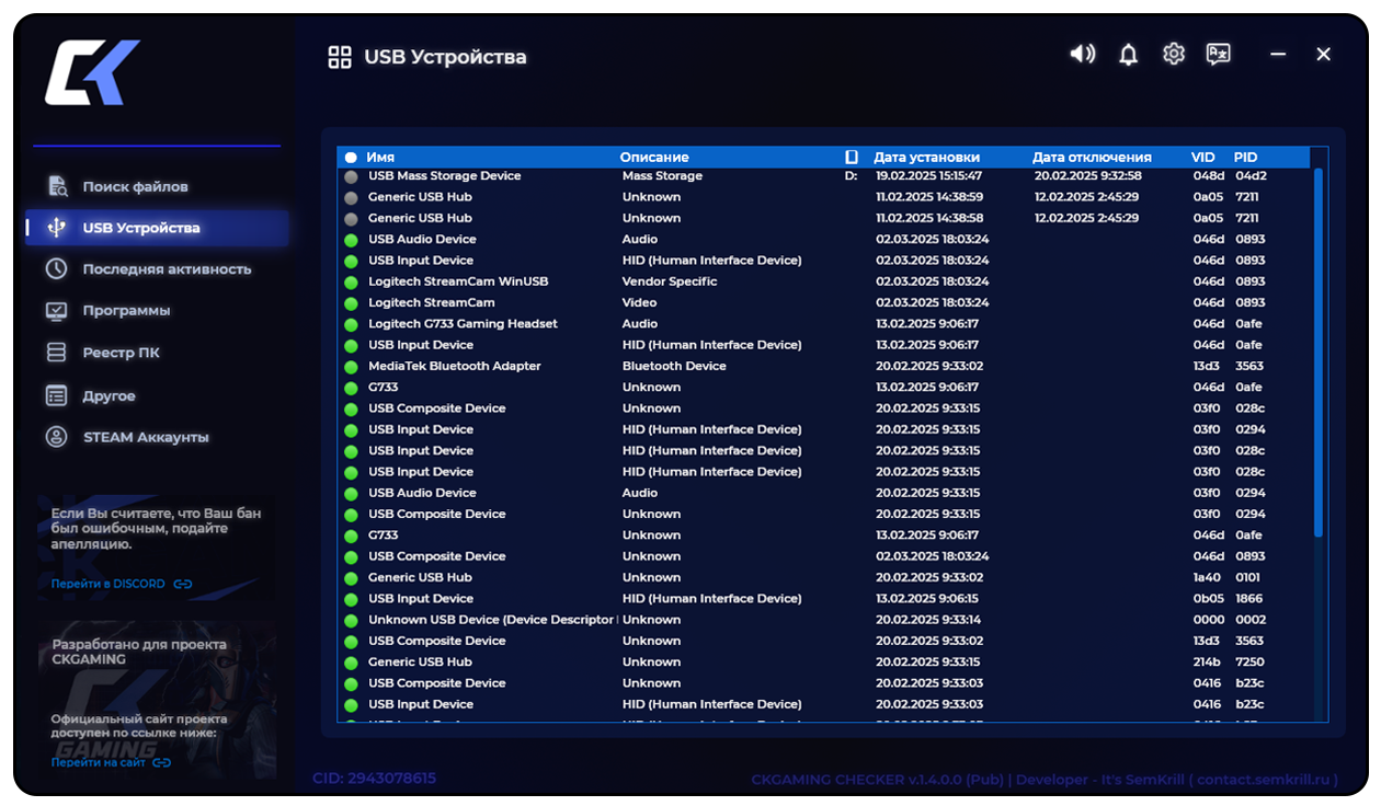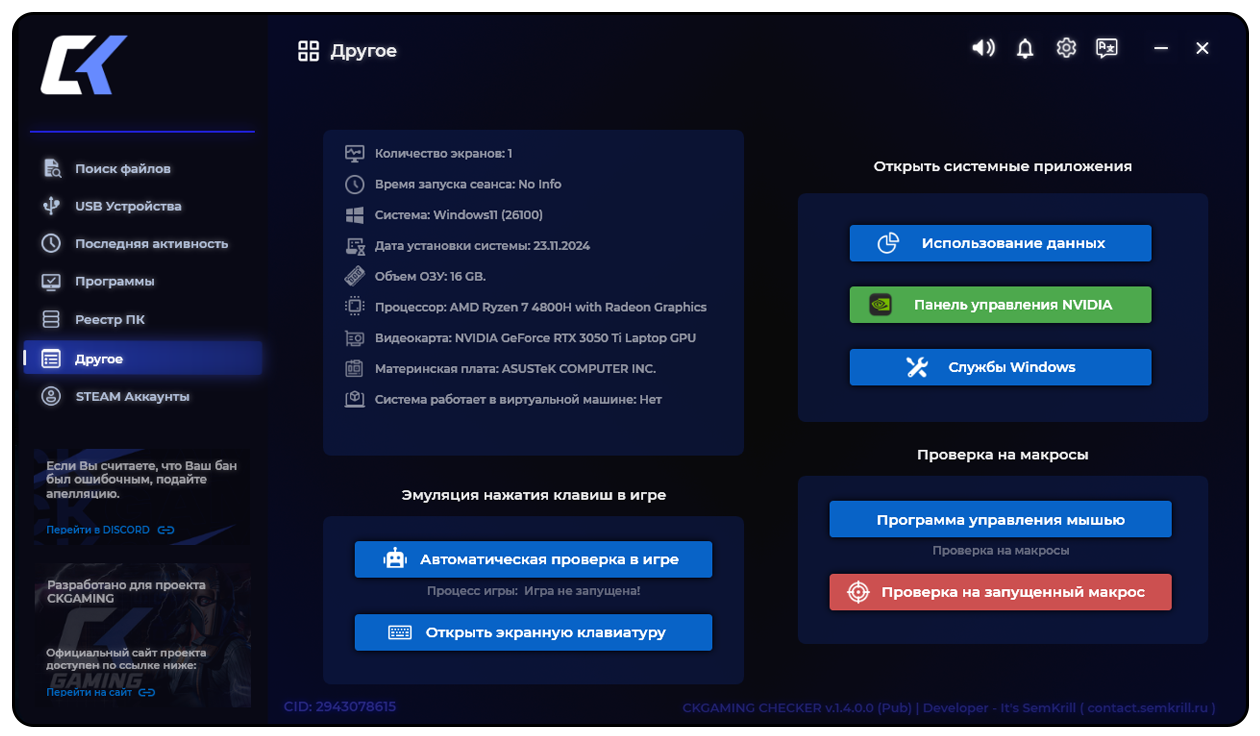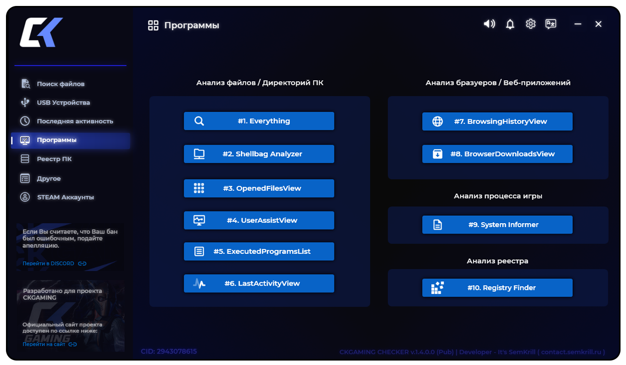 — Программа предназначена для обеспечения удобства при проверке Администратором Игрока на наличие стороннего ПО.